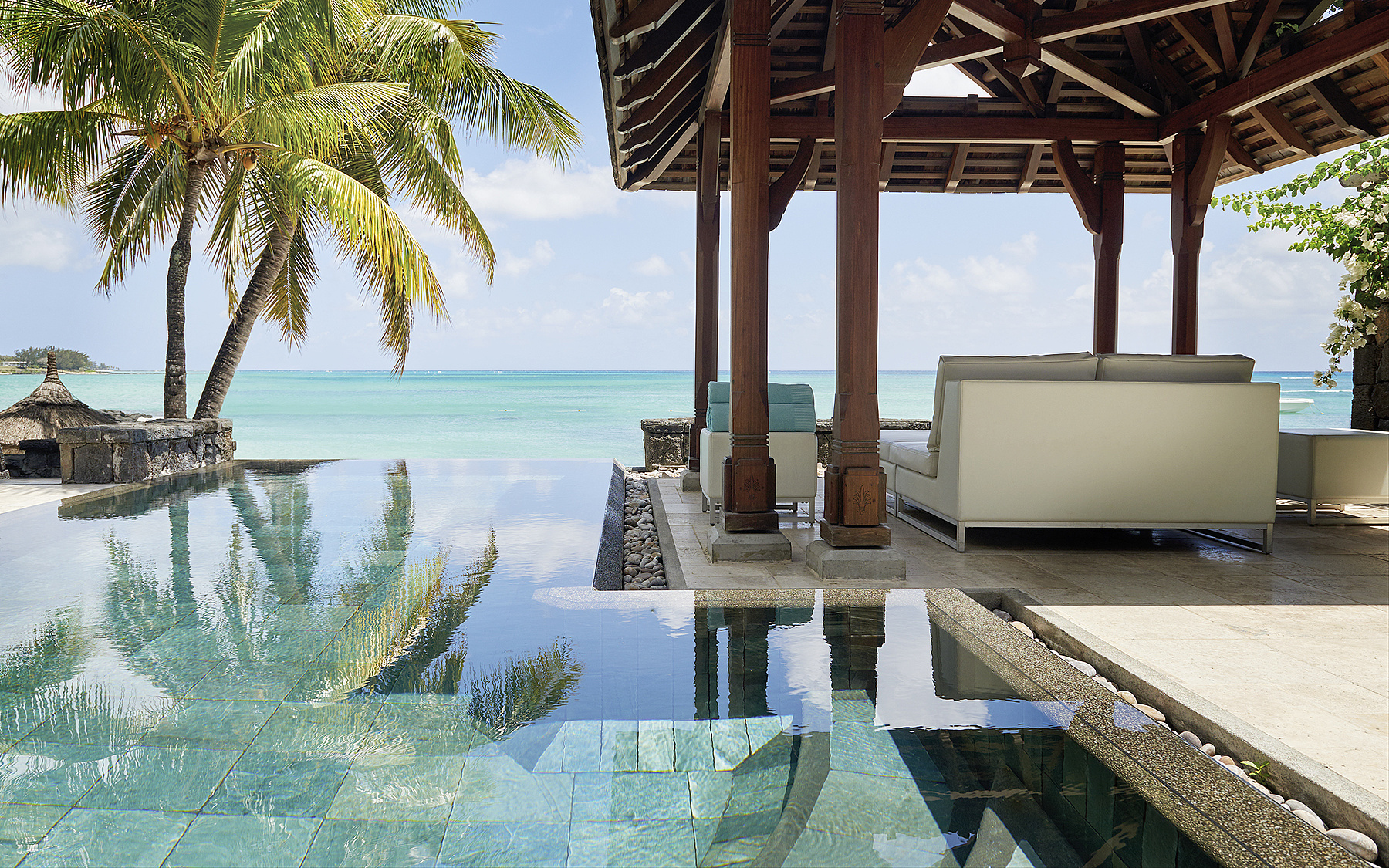 «Quand nous avons lancé le chantier le 15 mai 2014, nous n’avions pas encore dessiné l’ensemble du mobilier! Par chance, les artisans mauriciens avec lesquels nous avons travaillé ont joué le jeu, motivés par l’urgence positive qui nous habitait tous.» Et si les corps de métier se succèdent d’ordinaire, ils étaient ici tous présents simultanément. «Il y avait en permanence 500 ouvriers sur place. Dès le premier jour, nous avons cassé les sols du restaurant et les cloisons tout en creusant le trou de la nouvelle piscine, c’était totalement fou et galvanisant.» Avant la réouverture, Jacques Silvant était toutefois «mort de trouille». «Nos clients, très fidèles, approuvaient l’idée d’une rénovation mais craignaient de ne plus reconnaître ‹leur› hôtel. Certains hôtes étaient même plus anxieux que nous, c’est dire! Tout s’est finalement bien passé et chacun, y compris dans notre équipe, elle aussi fidèle, s’est fait à son nouvel environnement.»