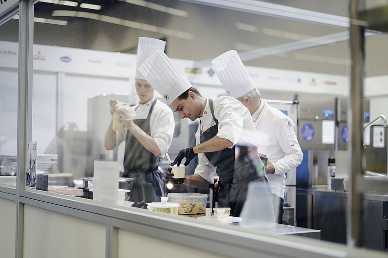 «Oui, il y a de la pression. Mais nous savons comment la transformer en quelque chose de positif», affirmait le chef d’équipe Sascha Heimann avant le concours. Aussitôt dit, aussitôt fait: lors de cette Olympiade des cuisiniers, la Swiss Armed Forces Culinary Team (SACT) a prouvé qu’elle était capable de relever les défis les plus difficiles en remportant l’or dans la catégorie Community Catering, ex aequo avec l’équipe Compass Group Finland et devant la team Norway Community Catering, troisième. Au terme de l’épreuve, Sasha Heimann a eu l’occasion d’évoquer en quelques mots la recette de ce succès. «Après le dernier Championnat du monde au Luxembourg, je me suis dit que, si nous voulions devenir champions olympiques, nous devions faire un vrai bond en avant», explique le cuisinier. «Et grâce à cette première expérience, je savais comment procéder.» C’est ainsi que l’équipe reformatée a commencé à s’entraîner régulièrement dès le mois de janvier 2023.