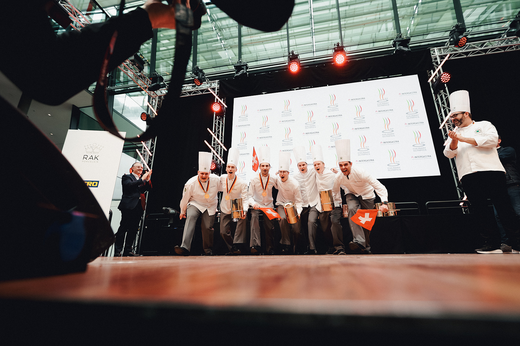 L'équipe nationale suisse des cuisiniers remporte le titre de vice-championne olympique, tandis que le Swiss Armed Forces Culinary Team (SACT) est champion olympique dans la catégorie Community Catering. De son côté, le Cercle de Lucerne décroche la troisième place dans la catégorie des équipes régionales.