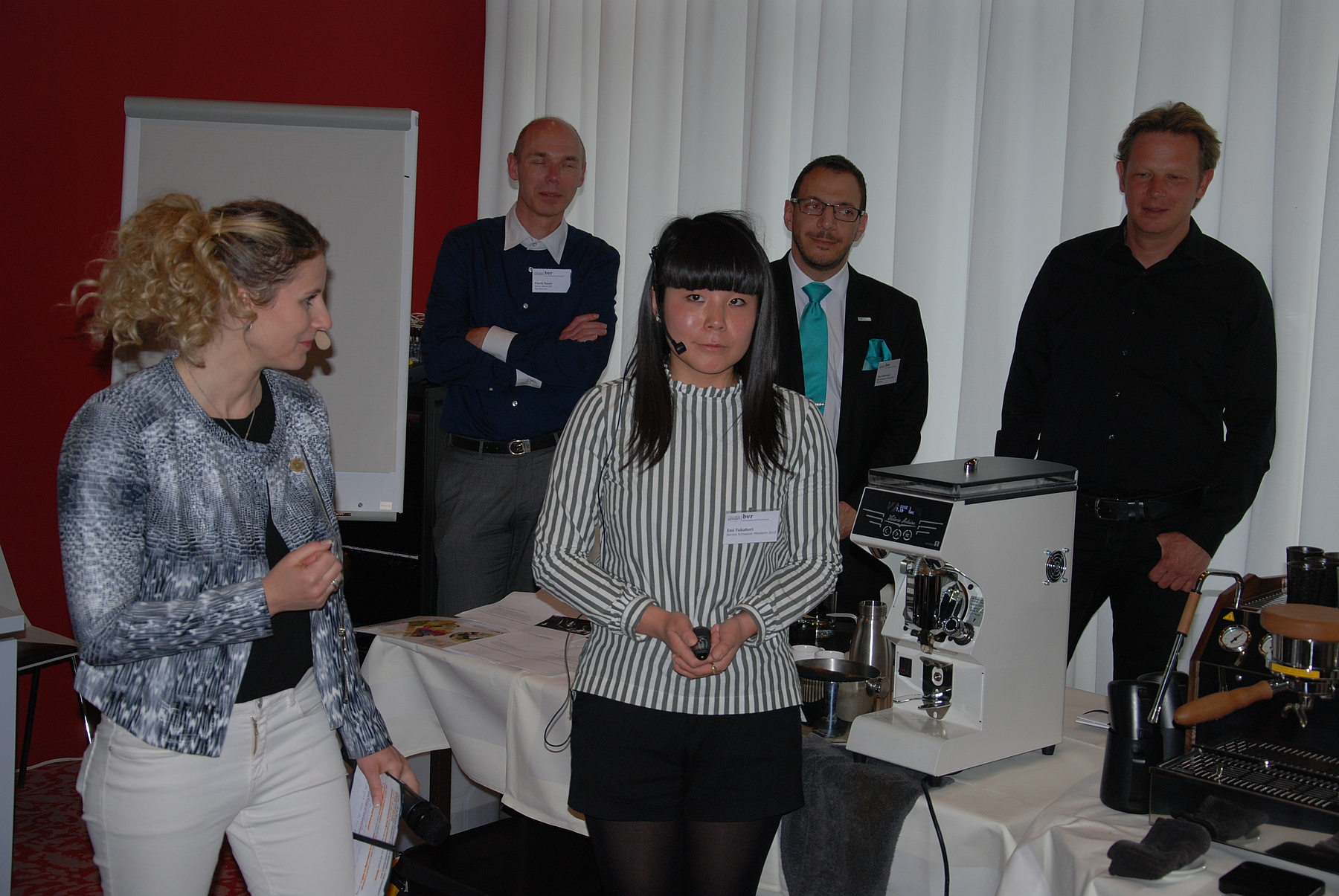 Die Barista-Meisterin 2015 Emi Fukahori zeigte den Teilnehmern, wie man perfekte Espressi und Cappuccini herstellt. Sie verwendete am Forum «Kaffee und Spirituosen» für zwei Espressi 19 Gramm gewaschene Bohnen aus Guatemala. Diese mahlte sie 30 Sekunden lang, bevor sie diese mit 40 Gramm Wasser aufbrühte. Da es wichtig sei, dass die Maschine stets gleich lang mahle, müsse sie täglich eingestellt werden. «Der grösste Fehler bei der Espressozubereitung liegt jedoch darin, dass er mit zu viel Wasser gemacht wird.» Bei der Herstellung zweier Cappuccini machte Emi Fukahori darauf aufmerksam, die Milch – in diesem Fall 150 Gramm – nie über 70 Grad zu erhitzen. «Sonst verliert sie Süsse und Geschmack.» Schokoladenpulver sei ein absolutes No-Go. Als Eigenkreation tischte sie vier Espressi mit je drei Gramm Kakaobutter, vier Gramm Rohzucker und 20 Gramm Aprikoseninfusion auf, nachdem sie die Mischung durch den Rahmbläser gelassen hatte. Das Rezept dazu finden Sie auf der Homepage der Hotel & Gastro Union.