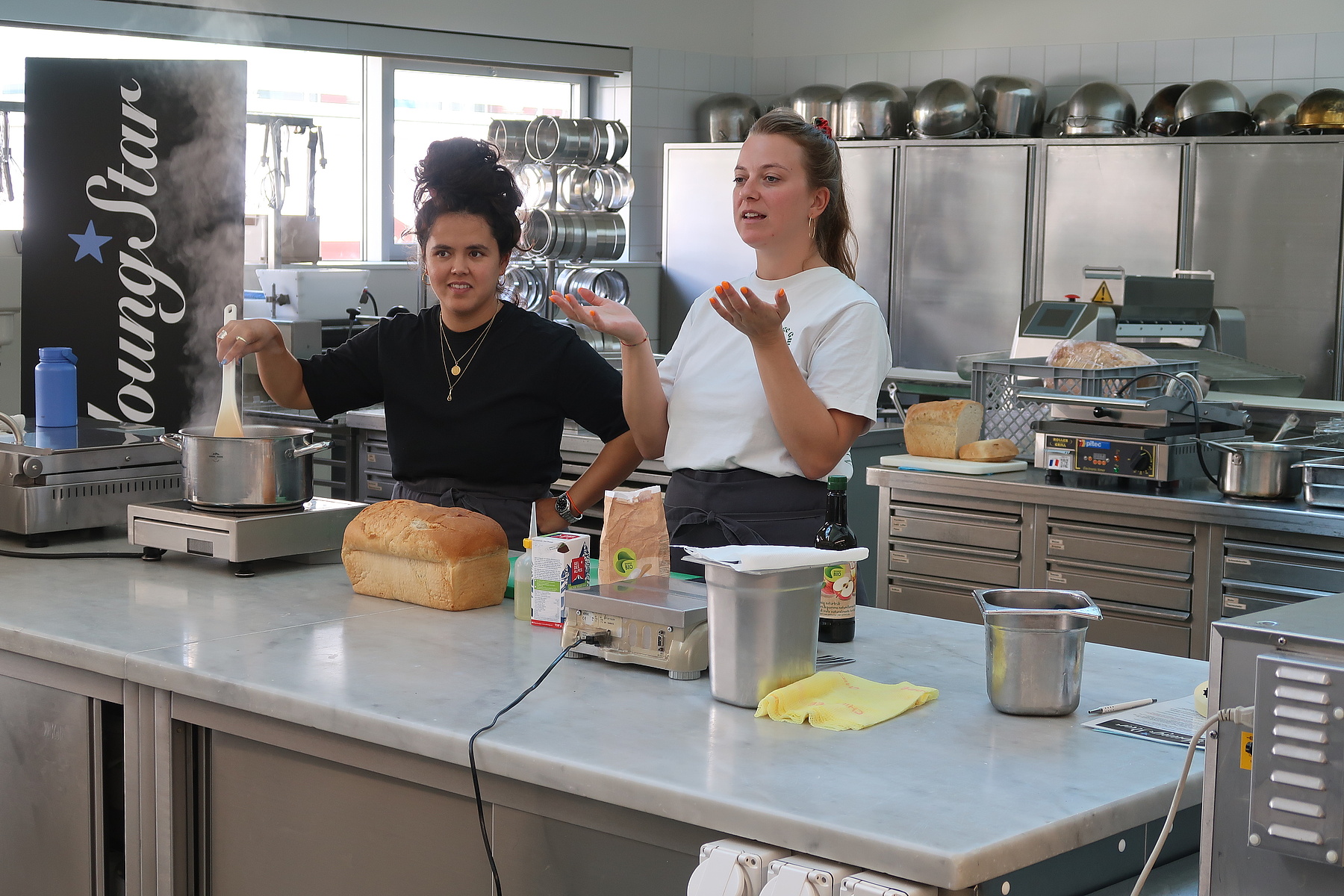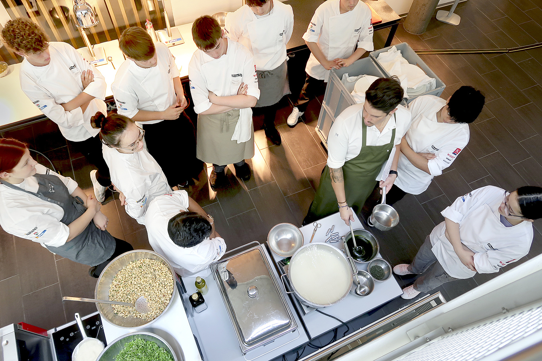 Der Hamburger Christian Hümbs ist ein mehrfach ausgezeichneter Konditor, Autor von zwei Fachbüchern und Juror der SAT.1-Show «Das grosse Backen». Er ist überzeugt, dass jeder Gaumen etwas Süsses verdient. Süss und buttrig ist dann auch sein Signature Dish «Franzbrötchen». Die Spezialität, die es in zahlreichen Variationen gibt, schlemmt er in seiner Heimat zum Frühstück am liebsten in der Version mit Zimt. Die grösste Herausforderung bei der Zubereitung von Franzbrötchen ist der tourierte Hefeteig. Nebst vielen Tipps dazu gab Christian Hümbs auch einen Einblick in die Herstellung seiner Nussbutter. Zusammen mit Zimtzucker ist diese ein Herzstück seiner Franzbrötchen. Begehrt war der Medienstar bei den Young-Star-Teilnehmenden auch für Selfies.