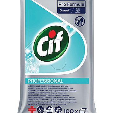 Die Cif-Professional-Allzweck-Reinigungstücher sind praktisch, schnell und zeitsparend. Die Lösung für das effiziente Reinigung von wasserfesten Oberflächen wie Waschräumen, Tischen, Stühlen etc.